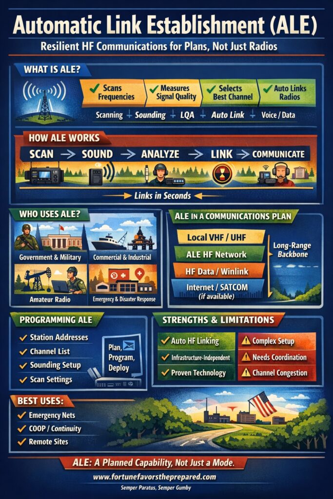 Many amateurs deploy ALE alongside voice, Winlink, and other HF tools as part of layered communications planning.