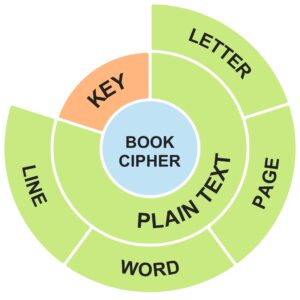 A book cipher, or Ottendorf cipher, is where a group of numbers, usually three, represent the page, line and letter or word in a specific book.