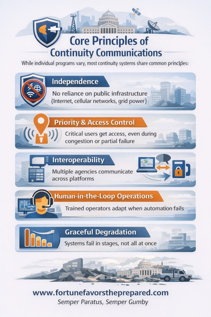 Unlike routine emergency communications—which often assume partial infrastructure availability—continuity planning assumes: