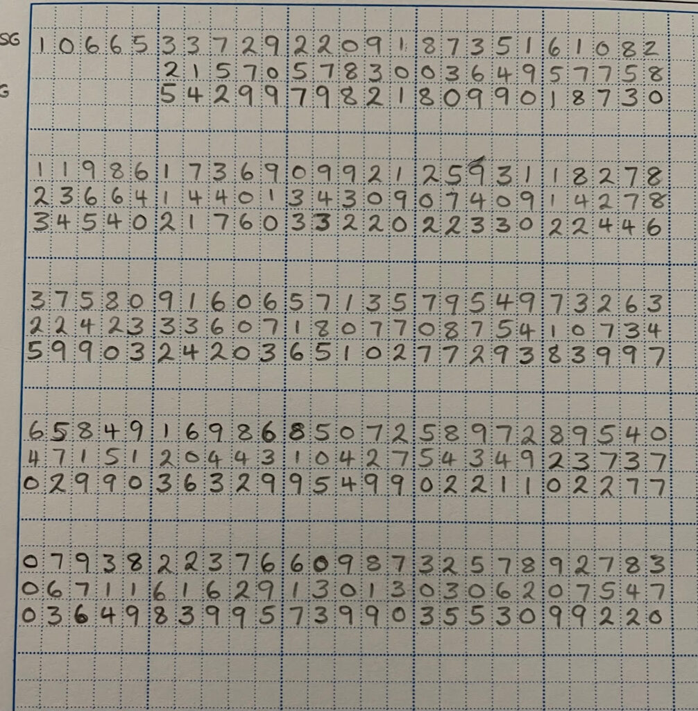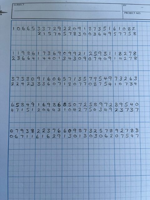 You then place the numbers below the numbers you received. BE CAREFUL NOT TO USE THE 1st 5 (you can write them in under the 1st 5 you received, but make sure you are clear that they are not part of the message.