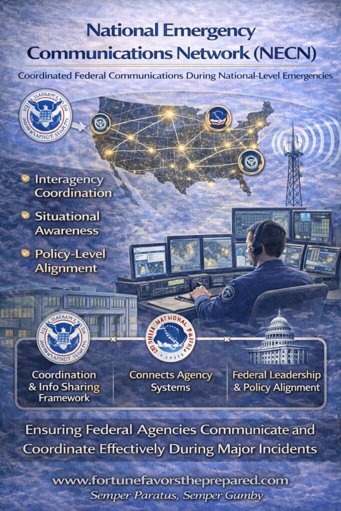 NECN is not a technical network. It does not provide radios, frequencies, or transport. Instead, it establishes policy, coordination pathways, and expectations for how federal agencies communicate and coordinate during national-level incidents.