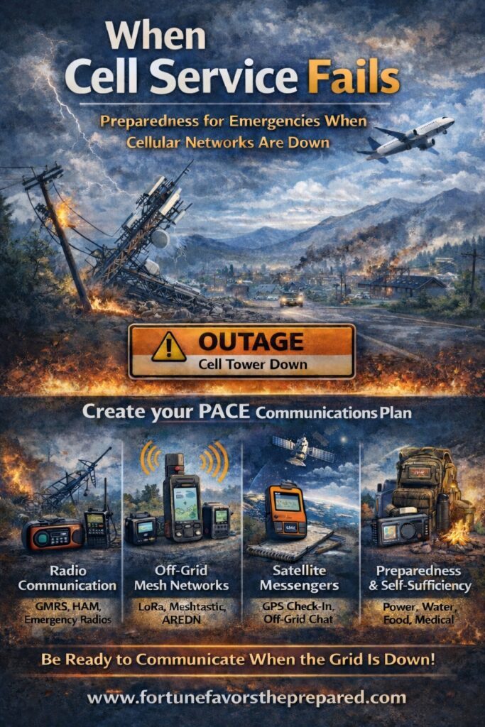 Knowing the capabilities and limitations of your primary communications tool is essential to your Family Emergency Plan and your communications plan. Even with all the tools available restoration of cellular service can take time after a disaster. You MUST have other means of communications, both to receive emergency messages, such as a NOAA Weather, communicate with neighbors, such as GMRS, or friends and family further away, such as ham radio. You could, if finances allow, have your own Starlink. If you have it fixed on your house for daily use consider removing it in severe weather so it doesn’t get damaged. There are other emergency devices such as the Garmin Inreach which allow texting over satellite (more information on satellite services and capabilities in this article).