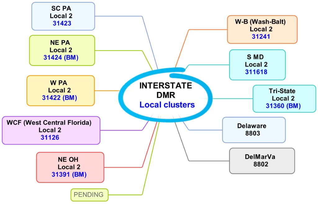 The Interstate DMR network consists of numerous repeaters in Pennsylvania, Maryland, Virginia, Delaware, New Jersey, Ohio, the District of Columbia and Florida.