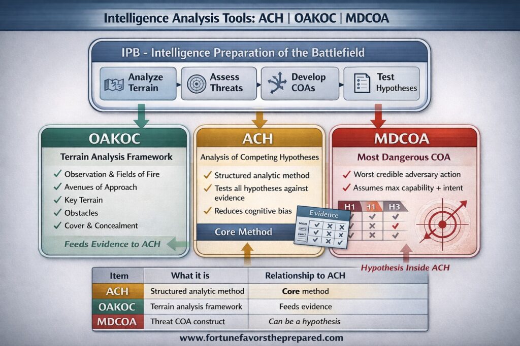 This overview explains how ACH, OAKOC, and MDCOA fit together, how they differ, and how they are used correctly—without conflating analysis with planning. Each concept introduced here will be explored in depth in dedicated follow-on articles.