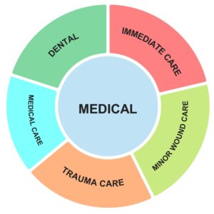 In this section we will discuss all things medical, from basic first aid, dealing with basic wound care, trauma and medical emergencies. We will provide some basic information, what you might encounter and what you might need to be prepared for. We will also provide you some resources for additional information.