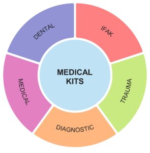 Medical kits come in all different configurations. Depending on the purpose of the kit the contents can vary.