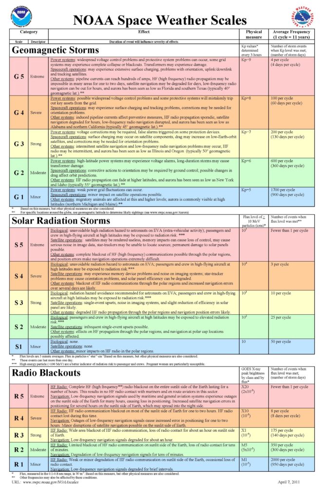 Three categories are used with solar storms; geomagnetic, solar radiation and radio blackouts. As with other weather events, there are levels within each.